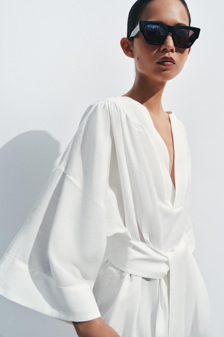 ZARA ПЛАТЬЕ-ТУНИКА С ПОЯСОМ — ZW COLLECTION, БЕЛЫЙ