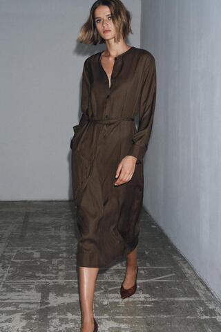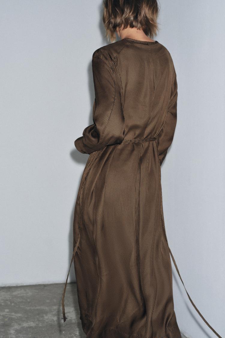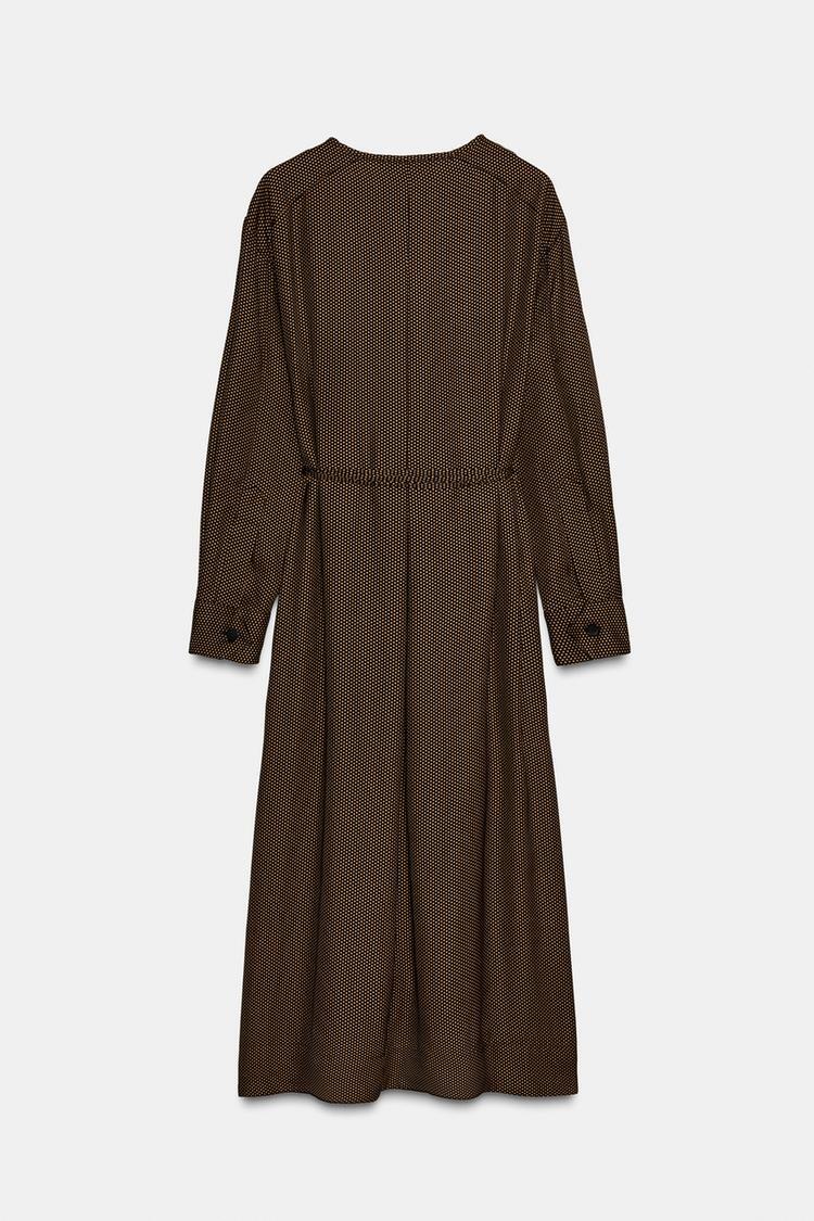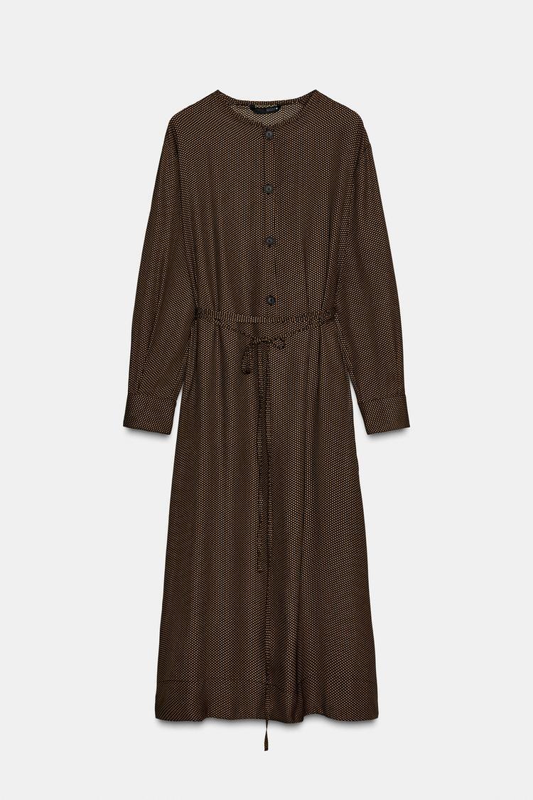 ZARA ПЛАТЬЕ В ГОРОШЕК С ПОЯСОМ — ZW COLLECTION, КОРИЧНЕВЫЙ