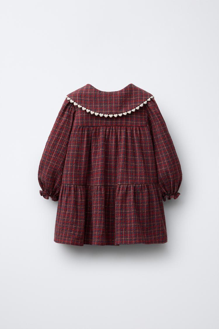 ZARA ПЛАТЬЕ В КЛЕТКУ С КРУЖЕВНЫМИ СЕРДЕЧКАМИ, КРАСНЫЙ