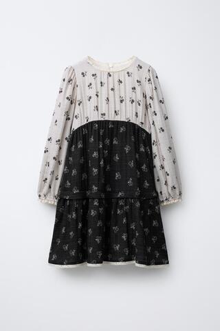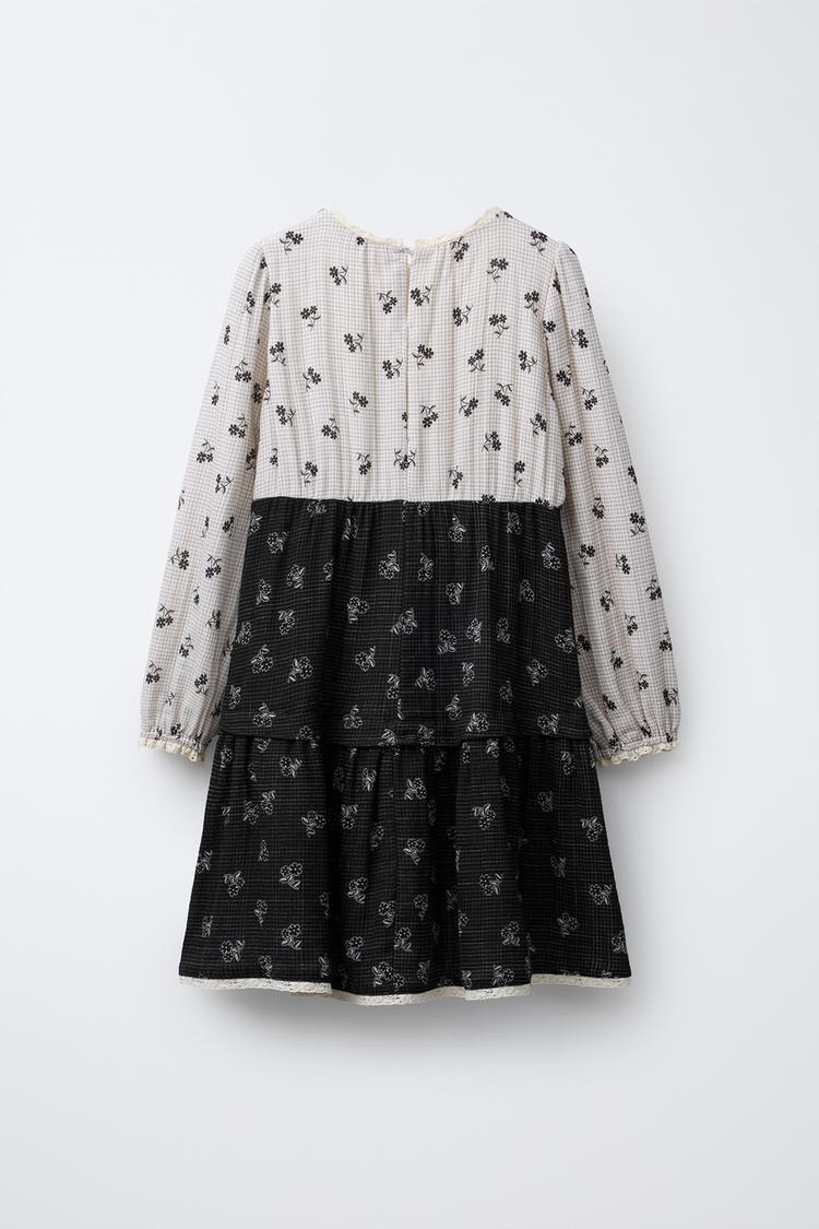 ZARA ПЛАТЬЕ В КЛЕТКУ С ЦВЕТОЧНЫМ ПРИНТОМ, ЧЕРНЫЙ/ЭКРЮ