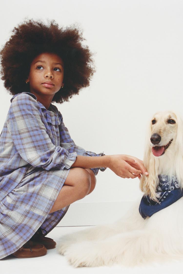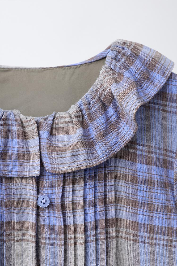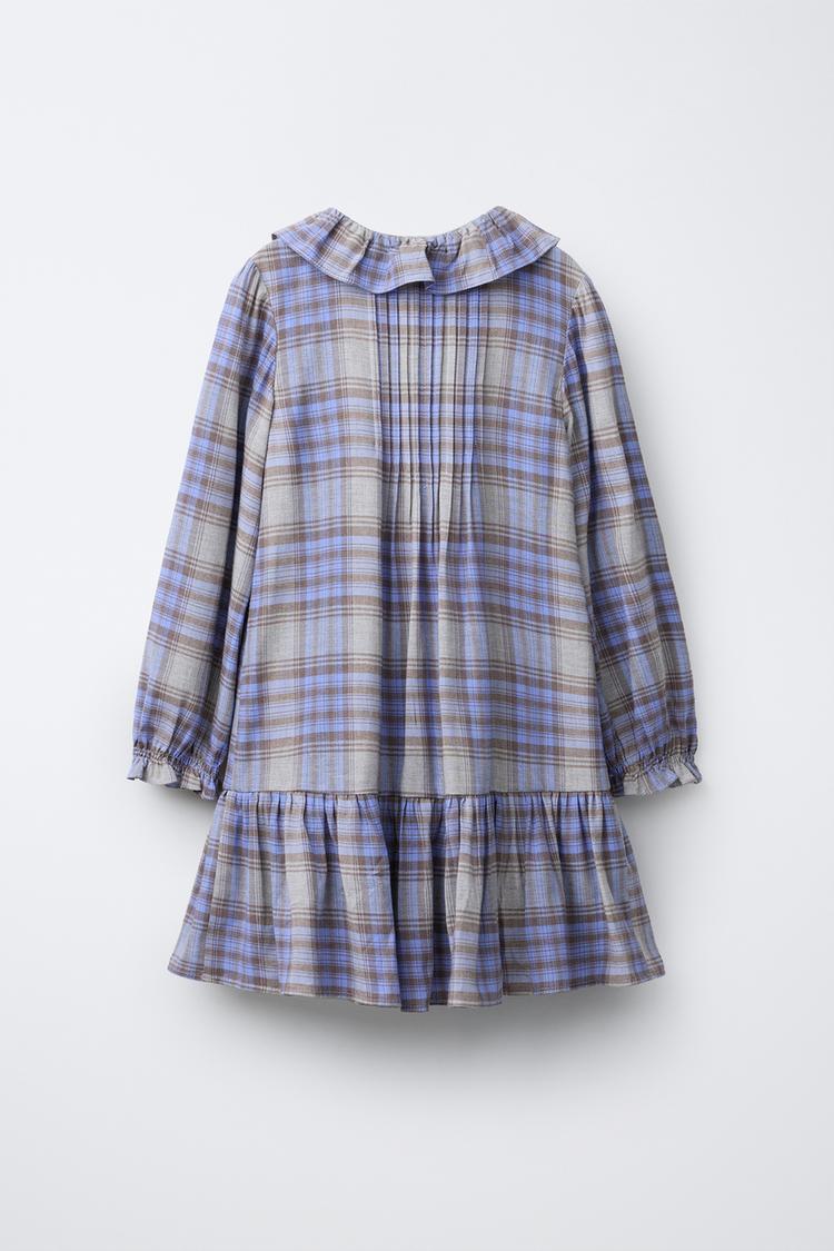 ZARA ПЛАТЬЕ В КЛЕТКУ С ЗАЩИПАМИ, СЕРЫЙ/СИНИЙ