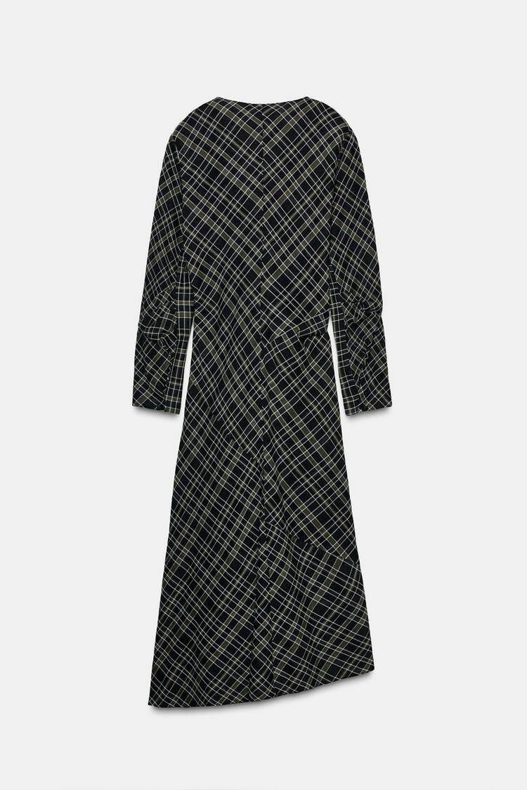 ZARA ПЛАТЬЕ В КЛЕТКУ СО СБОРКАМИ, АНТРАЦИТОВЫЙ/ХАКИ