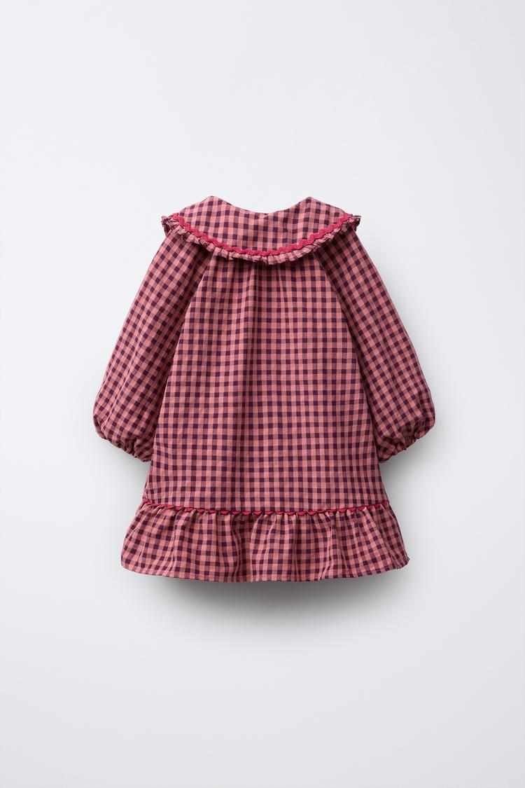 ZARA ПЛАТЬЕ В КЛЕТКУ ВИШИ С ВОЛНИСТЫМИ КРАЯМИ, ЛОСОСЕВЫЙ