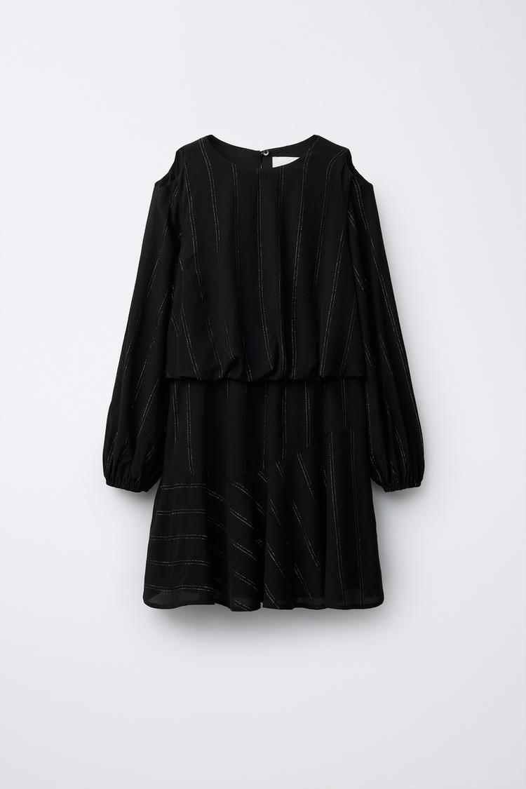 ZARA ПЛАТЬЕ В ПОЛОСКУ С БЛЁСТКАМИ, ЧЕРНЫЙ