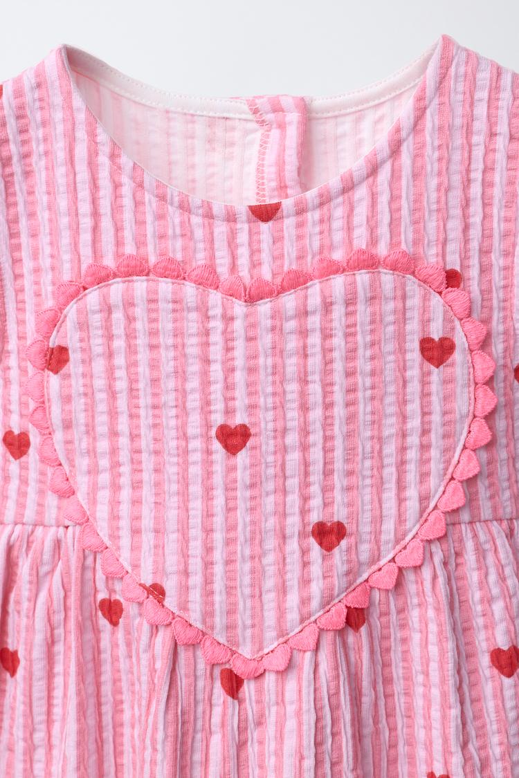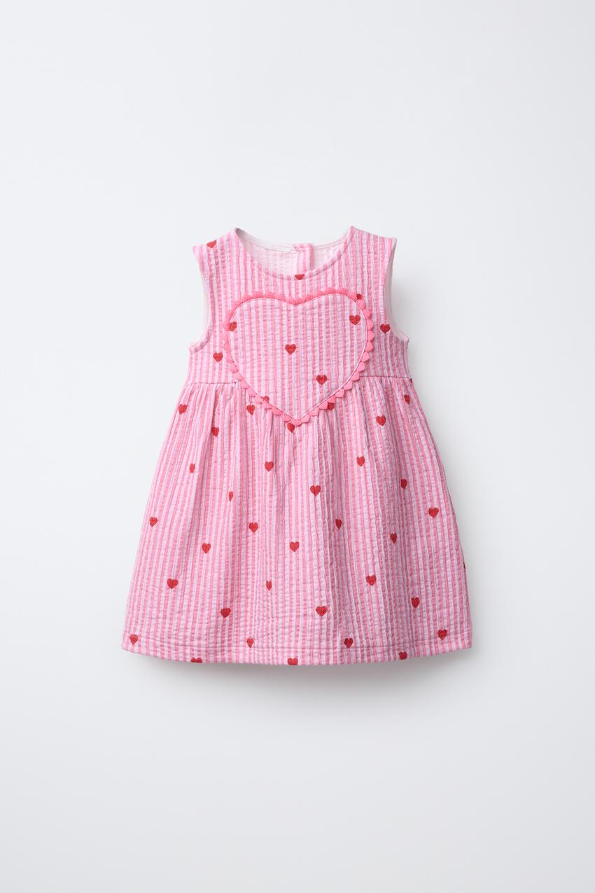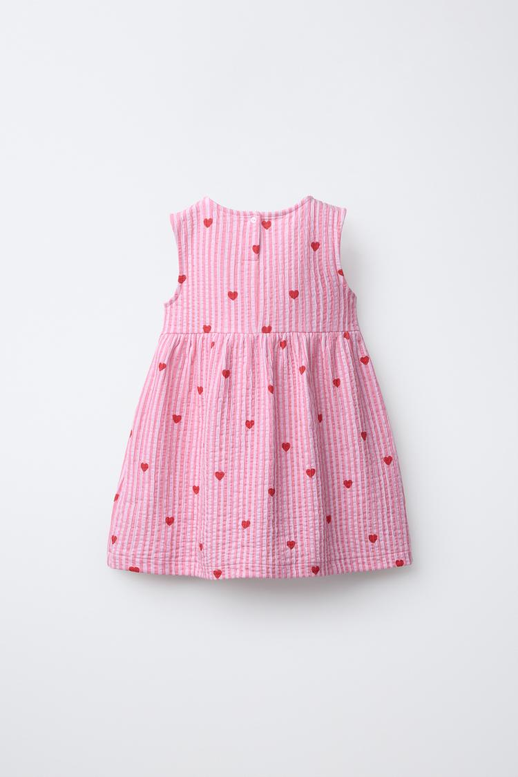 ZARA ПЛАТЬЕ В ПОЛОСКУ С СЕРДЦАМИ, ЦВЕТ ФУКСИИ