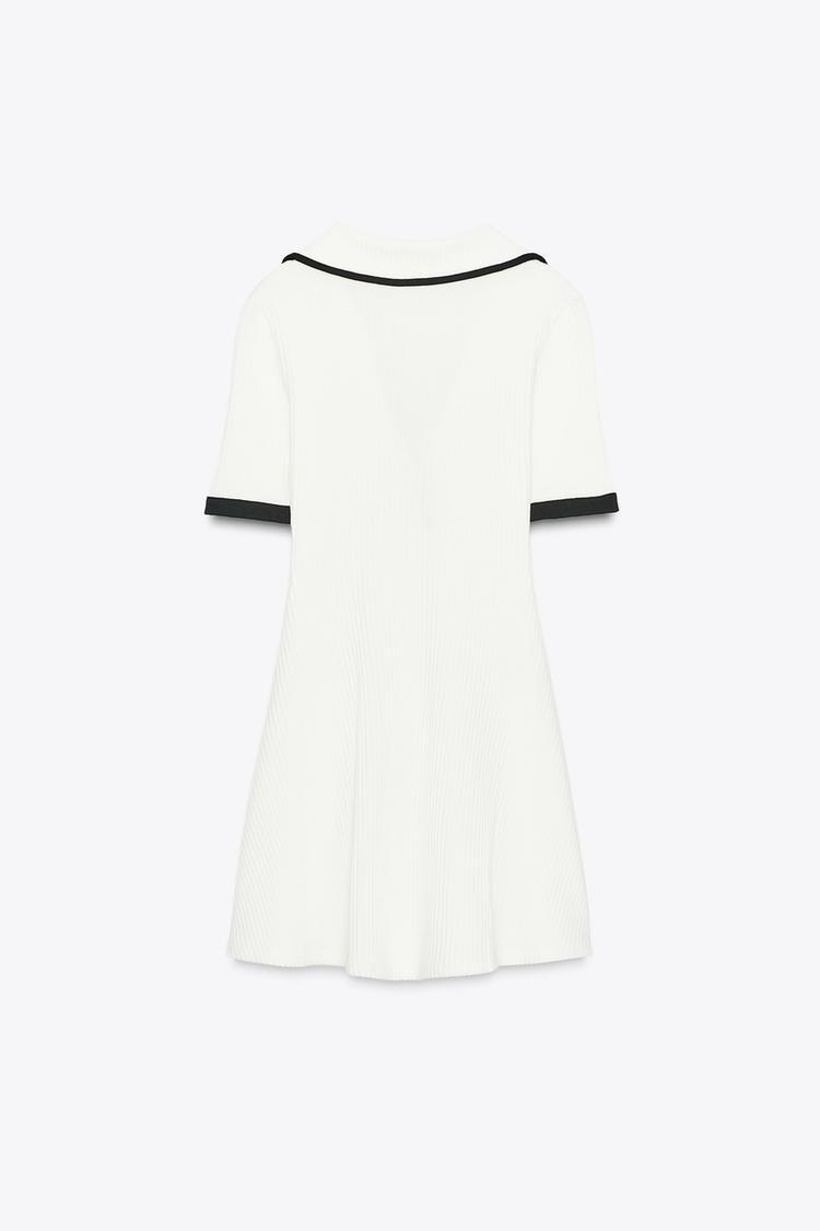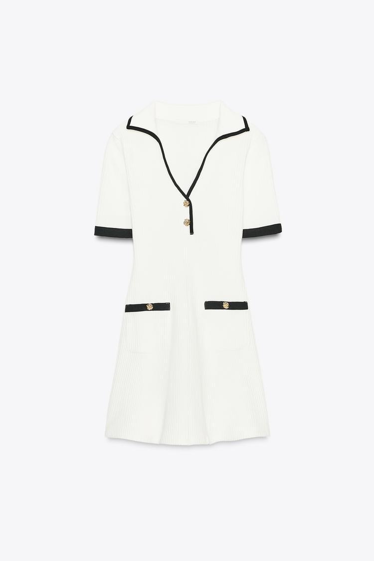 ZARA ПЛАТЬЕ В РУБЧИК С МЕТАЛЛИЧЕСКИМИ ПУГОВИЦАМИ, БЕЛЫЙ/ЧЕРНЫЙ