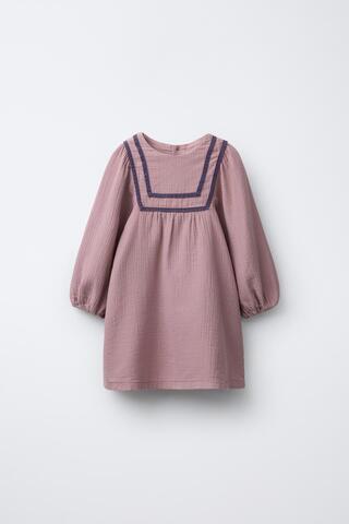 ZARA ПЛАТЬЕ В СТИЛЕ РУСТИК С ВЫШИВКОЙ, ТЕМНО-РОЗОВЫЙ