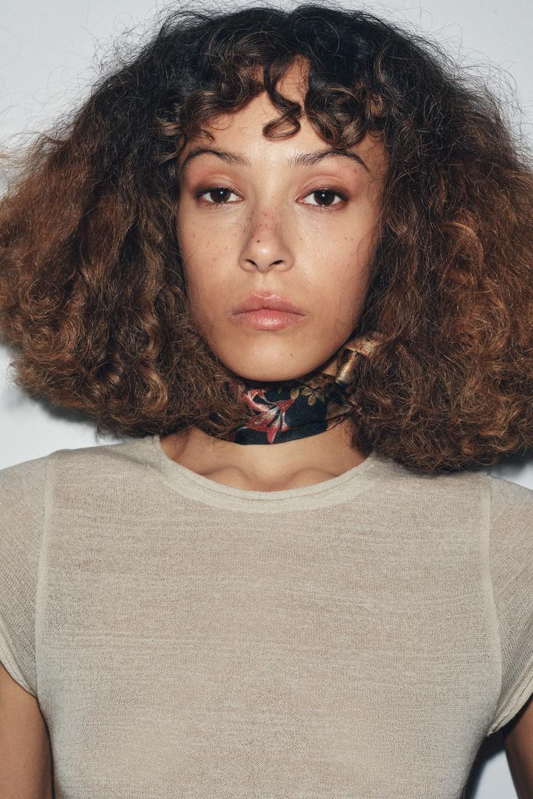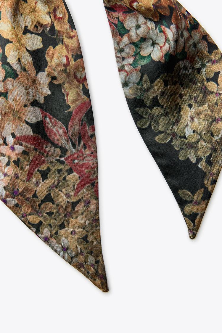 ZARA ПЛАТОК-ГЛУСТОК С ЦВЕТОЧНЫМ ПРИНТОМ, КОРИЧНЕВЫЙ