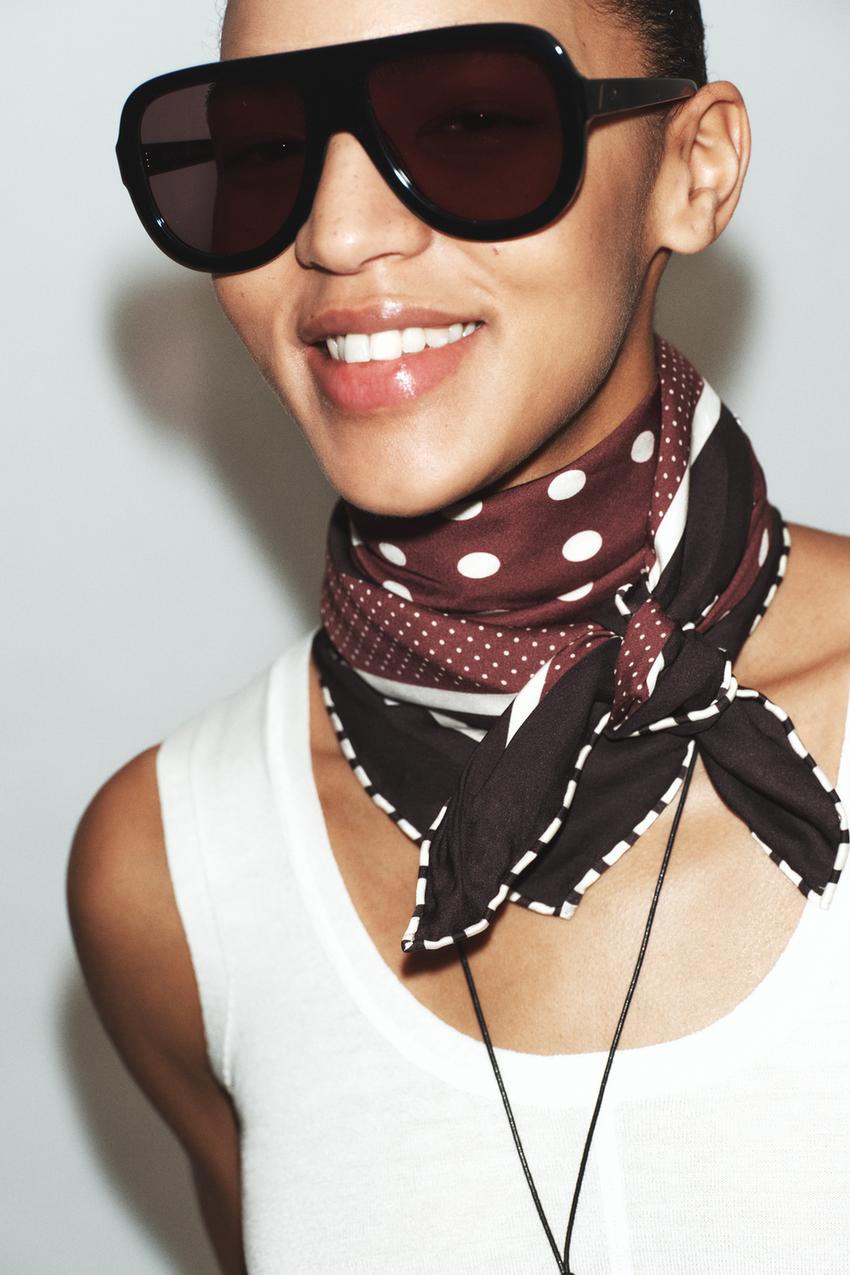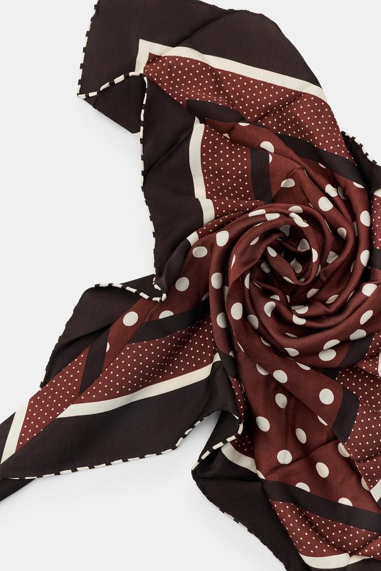 ZARA ПЛАТОК ИЗ ВИСКОЗЫ 100% В ГОРОШЕК, КОРИЧНЕВЫЙ