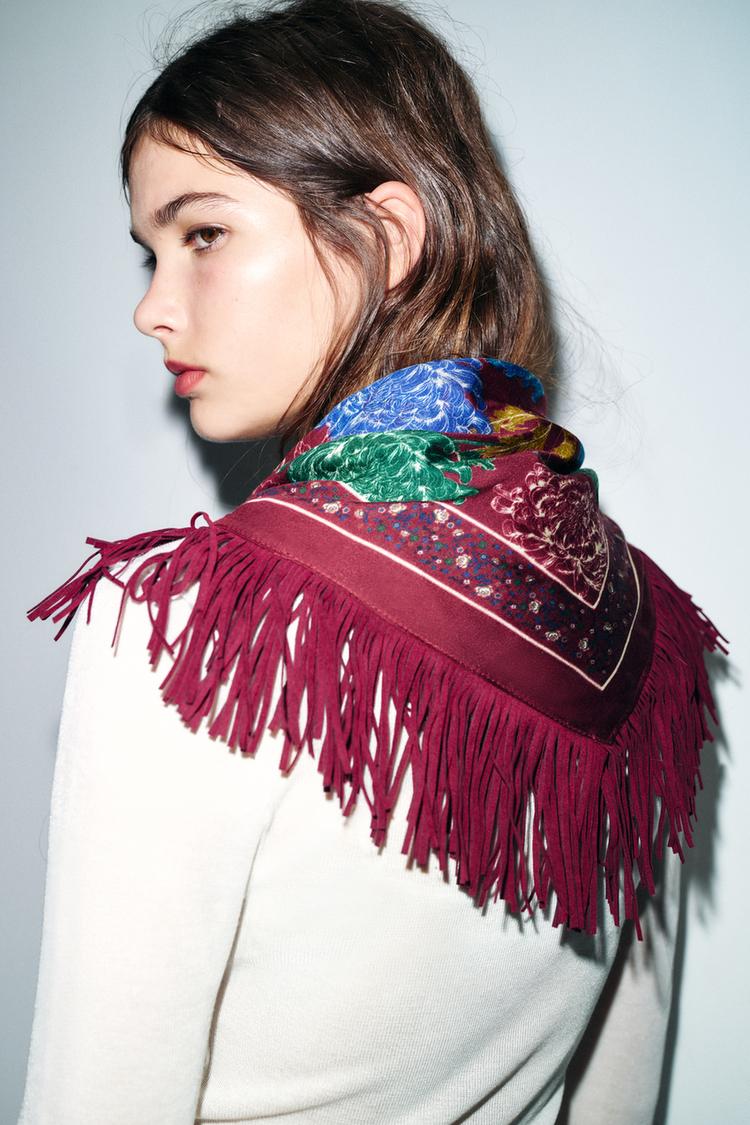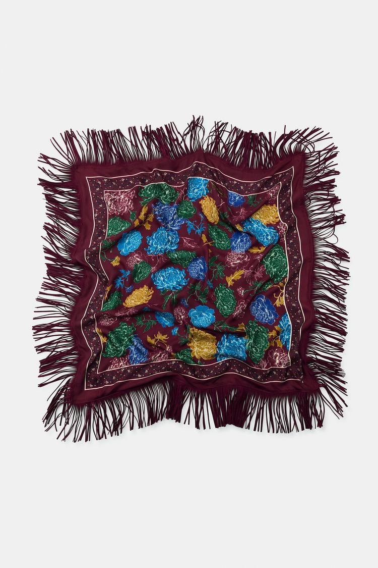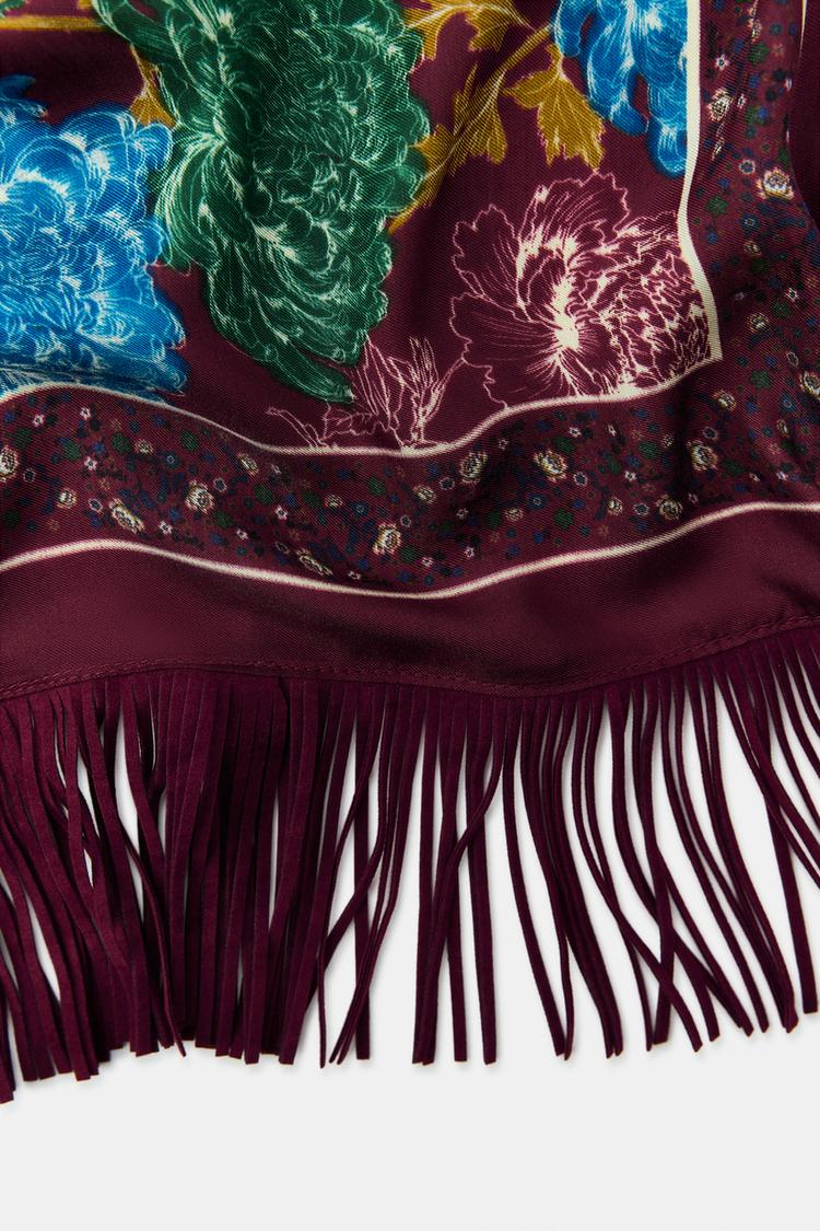 ZARA ПЛАТОК С ШЕЛКОВЫМ ПРИНТОМ, ГРАНАТОВЫЙ