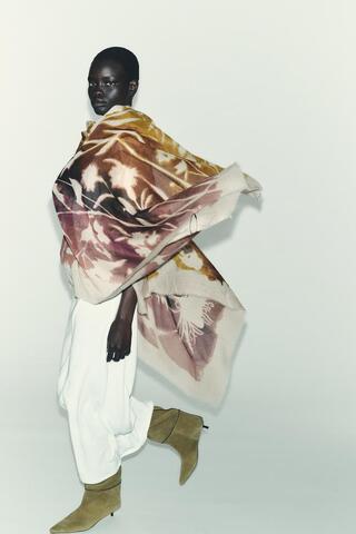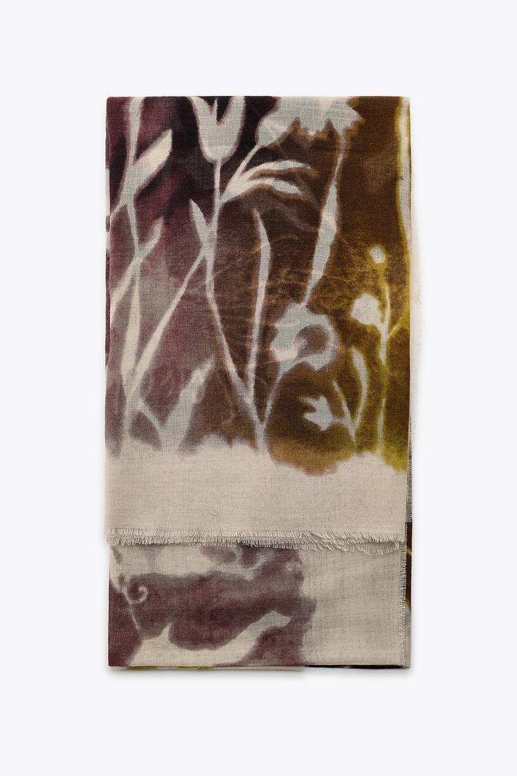 ZARA ПЛАТОК С ЦВЕТОЧНЫМ ПРИНТОМ, ЭКРЮ