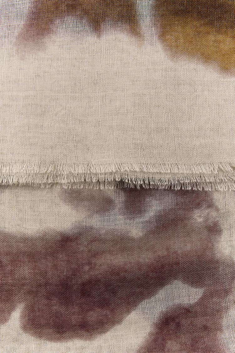 Платок с принтом, изготовленный из смесовой ткани с 9% шерсти. Отделка бахромой.
