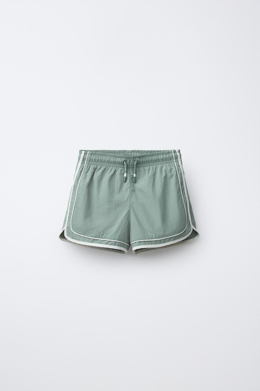 ZARA ПЛАВКИ-БЕРМУДЫ С КОНТРАСТНЫМИ ПОЛОСАМИ, ЗЕЛЕНЫЙ