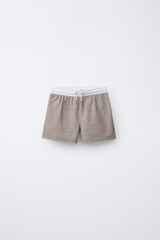 ZARA ПЛАВКИ-БЕРМУДЫ С НАШИВКОЙ, РЫЖЕВАТО-КОРИЧНЕВЫЙ