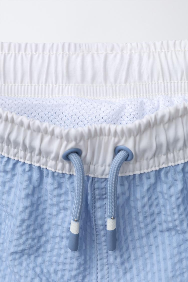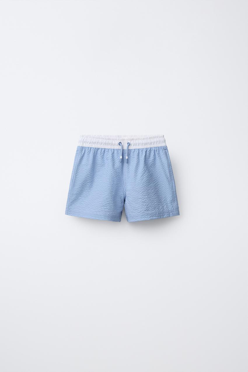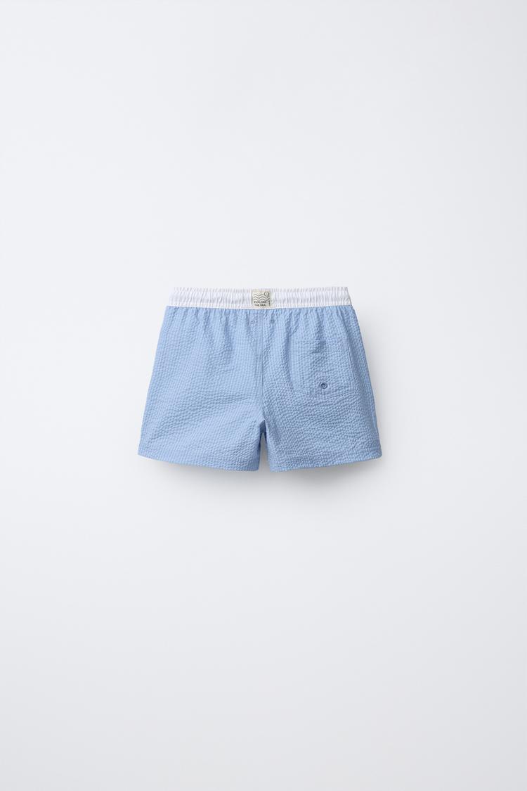 ZARA ПЛАВКИ-БЕРМУДЫ С НАШИВКОЙ, СИНИЙ