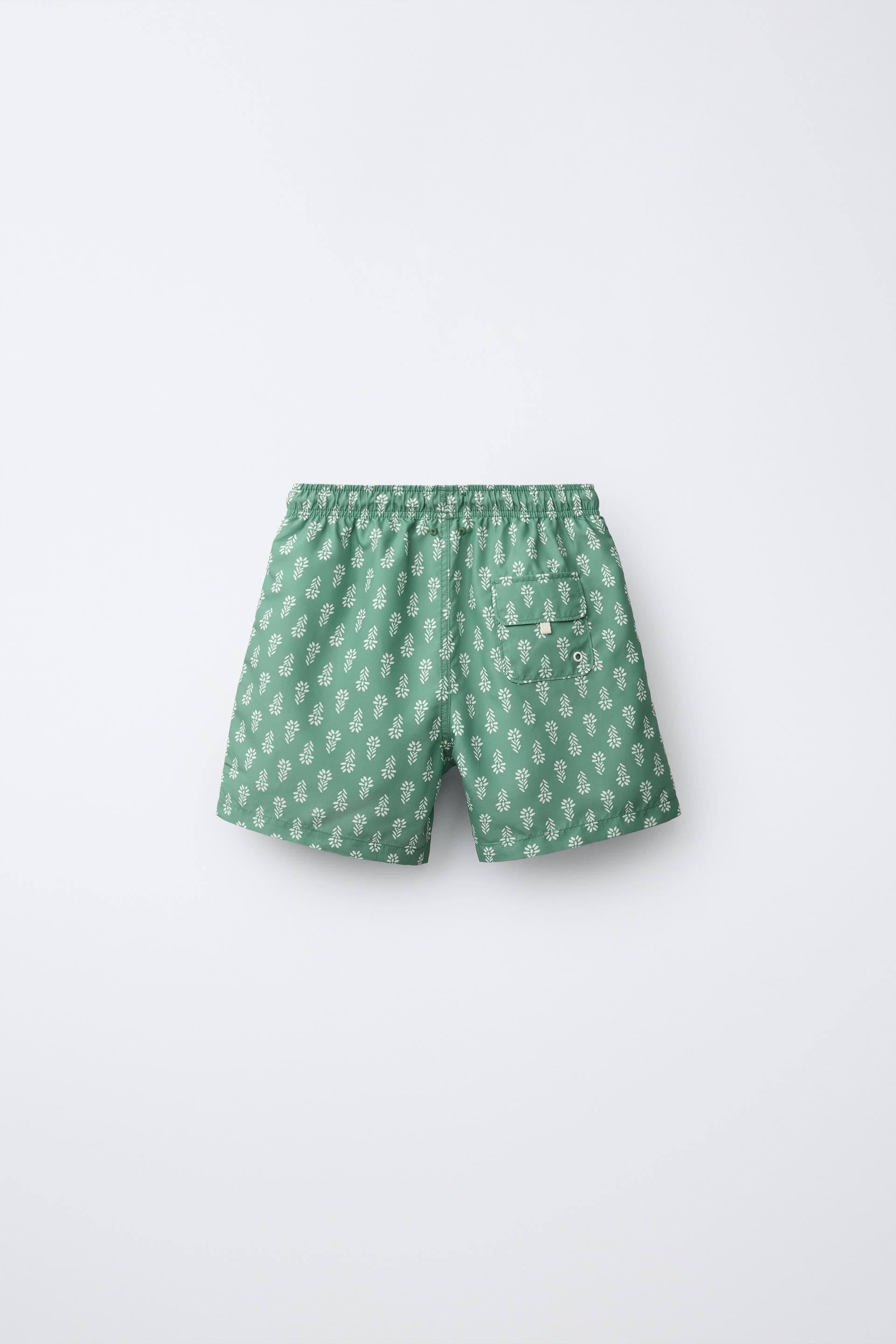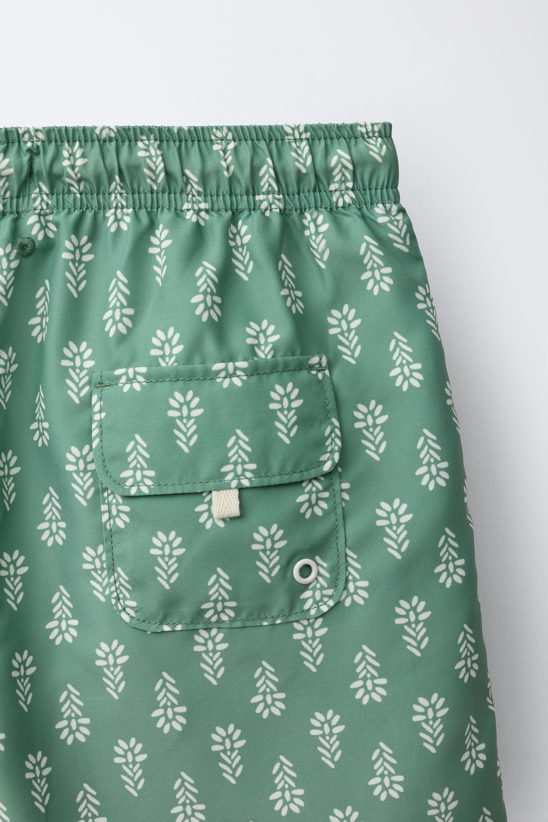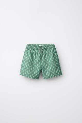 ZARA ПЛАВКИ-БЕРМУДЫ С ПРИНТОМ, ЗЕЛЕНЫЙ