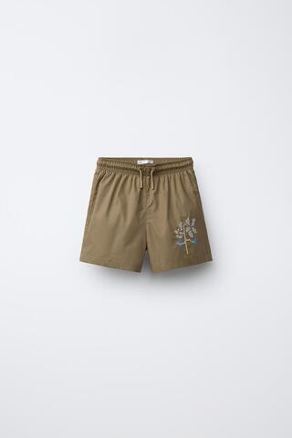 ZARA ПЛАВКИ-БЕРМУДЫ С ВЫШИВКОЙ, ХАКИ