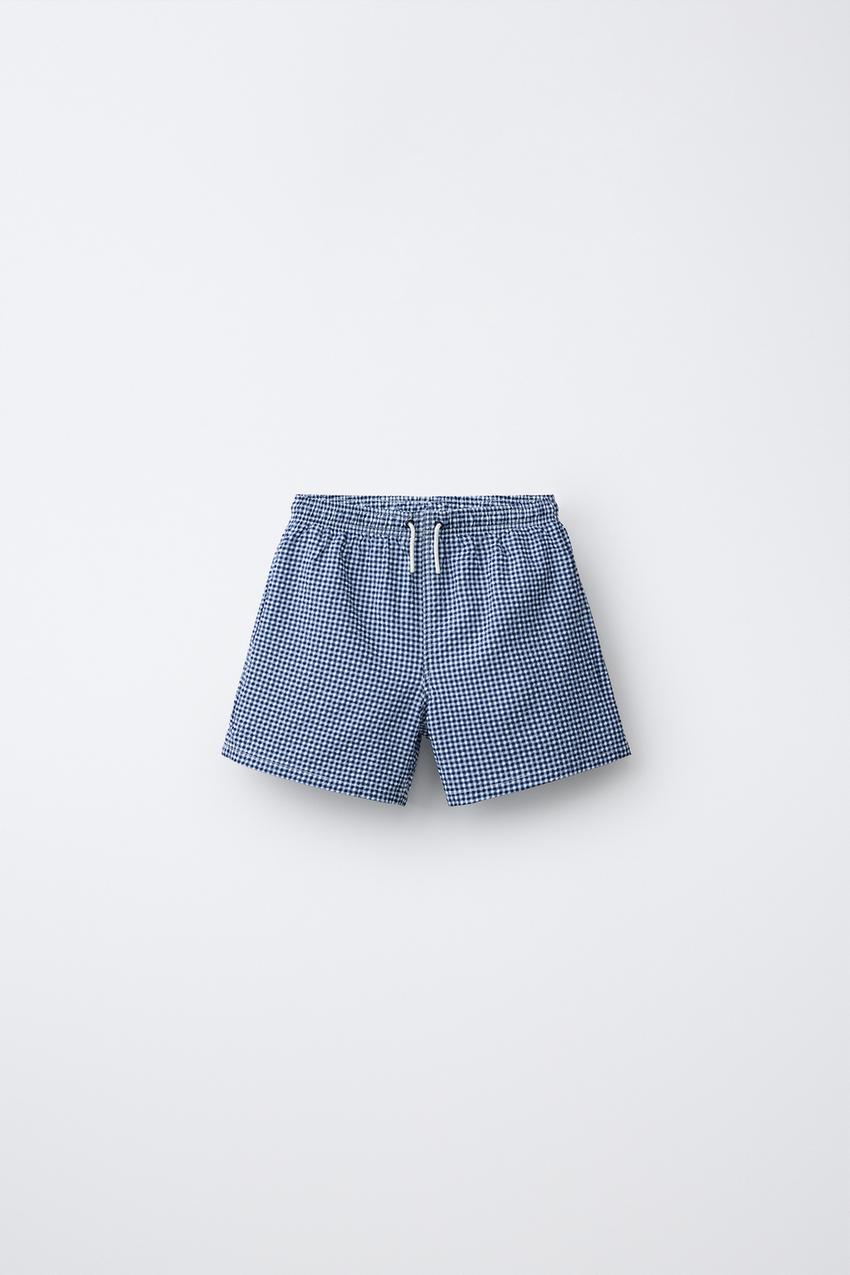 ZARA ПЛАВКИ-БЕРМУДЫ В КЛЕТКУ ВИШИ, СИНИЙ