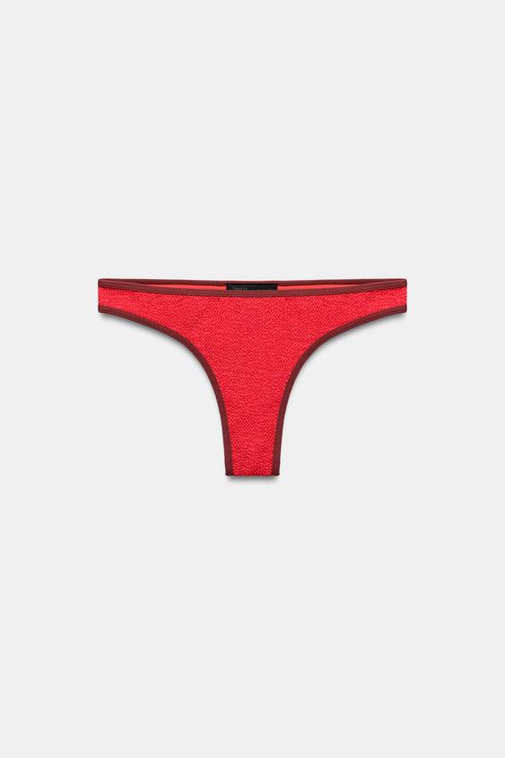 ZARA ПЛАВКИ-БИКИНИ С КОНТРАСТНОЙ ТЕКСТУРОЙ, КРАСНЫЙ