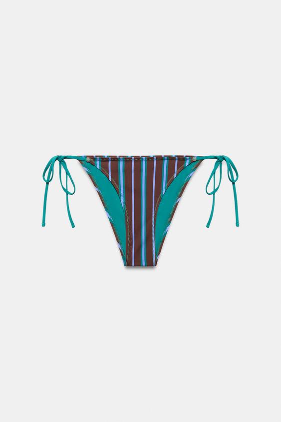 ZARA ПЛАВКИ-БИКИНИ В ПОЛОСКУ С ЗАВЯЗКАМИ, СИНИЙ