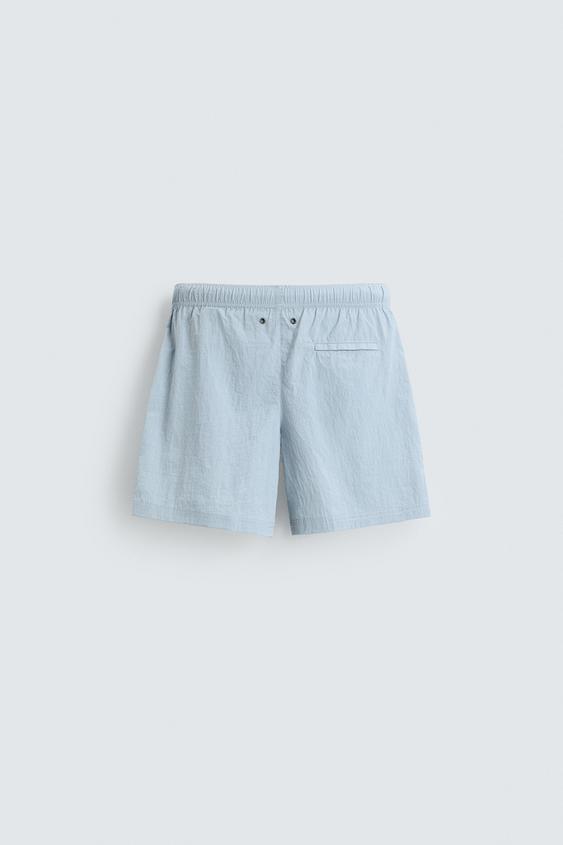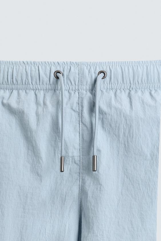 ZARA ПЛАВКИ ИЗ ЖАТОЙ ТКАНИ В МЕЛКУЮ ПОЛОСКУ, НЕБЕСНО-ГОЛУБОЙ