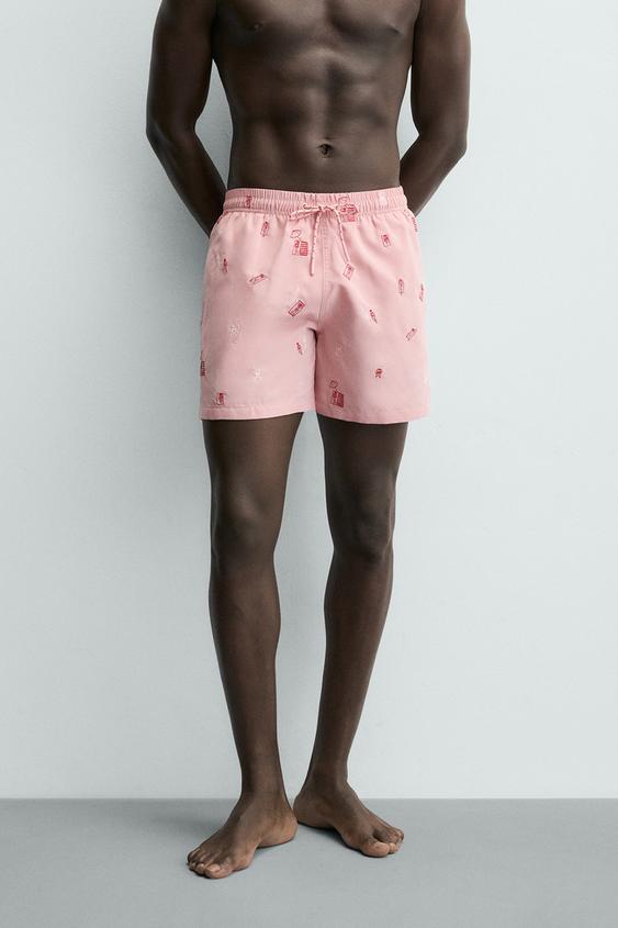 ZARA ПЛАВКИ С КОМБИНИРОВАННОЙ ВЫШИВКОЙ, РОЗОВЫЙ