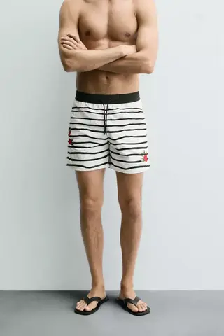 ZARA ПЛАВКИ С ПРИНТОМ СРЕДНЕЙ ДЛИНЫ © OTIS KWAME KYE QUAICOE, ЧЕРНЫЙ/БЕЛЫЙ
