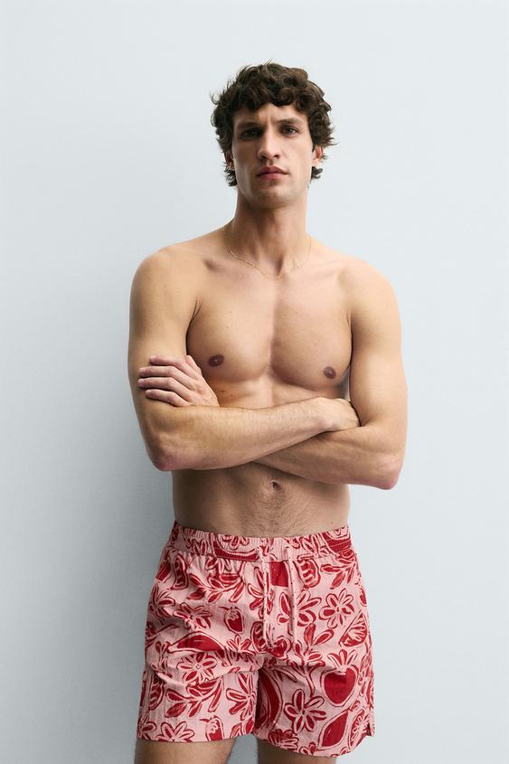ZARA ПЛАВКИ С ПРИНТОМ В ВИДЕ ФРУКТОВ, РОЗОВЫЙ
