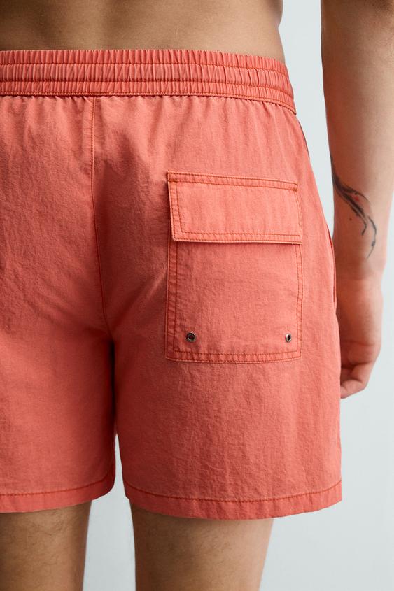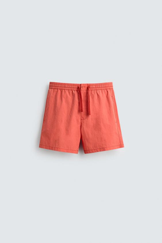 ZARA ПЛАВКИ СРЕДНЕЙ ДЛИНЫ ИЗ ТЕКСТУРИРОВАННОЙ ТКАНИ, КОРАЛЛОВЫЙ