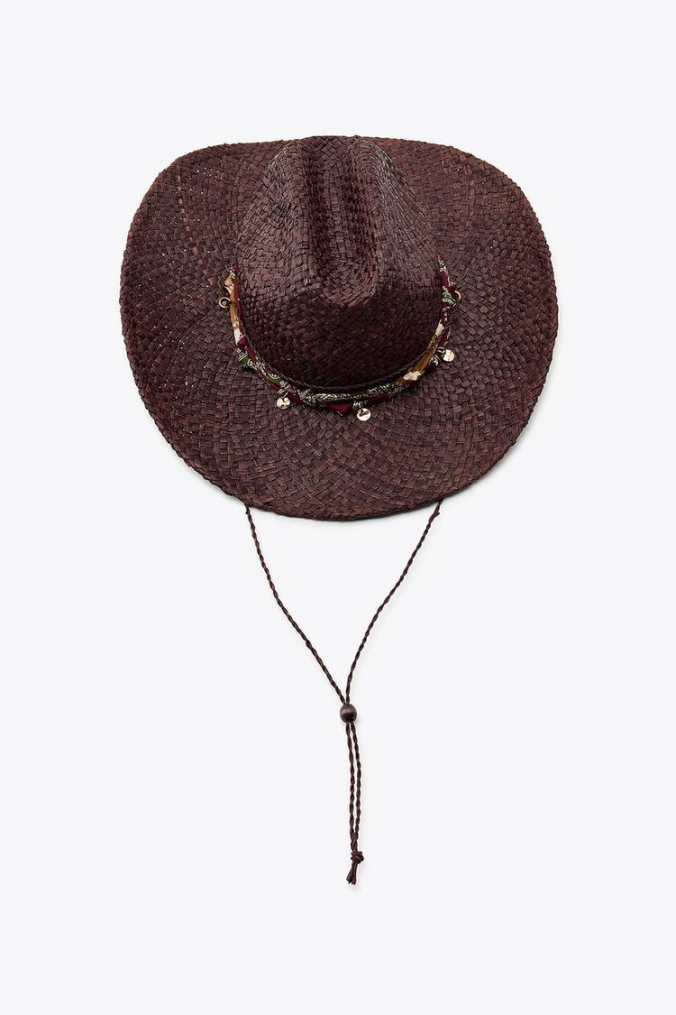 ZARA ПЛЕТЕНАЯ КОВБОЙСКАЯ ШЛЯПА, КОРИЧНЕВЫЙ