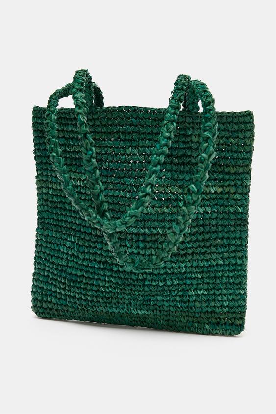 ZARA ПЛЕТЕНАЯ МИНИ-СУМКА-ТОУТ, ЗЕЛЕНЫЙ