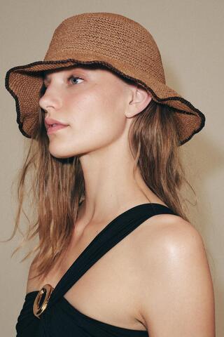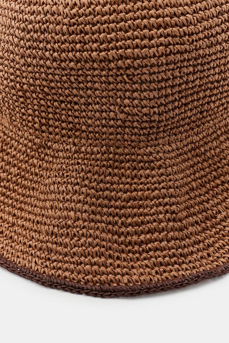 ZARA ПЛЕТЕНАЯ ПАНАМА С КОНТРАСТНЫМ КРАЕМ, МЕДНЫЙ