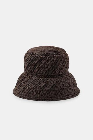 ZARA ПЛЕТЕНАЯ ШЛЯПА ИЗ 100% БУМАГИ, КОРИЧНЕВЫЙ