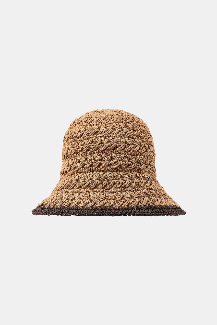 ZARA ПЛЕТЕНАЯ ШЛЯПА С КОНТРАСТНОЙ ОТДЕЛКОЙ, СВЕТЛО-БЕЖЕВЫЙ