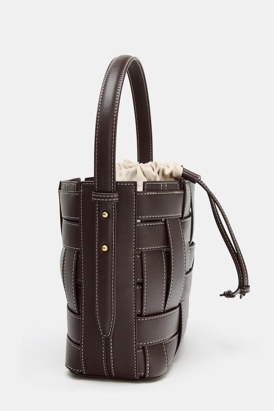 ZARA ПЛЕТЕНАЯ СУМКА С ПЛЕЧЕВЫМ РЕМНЕМ, КОРИЧНЕВЫЙ
