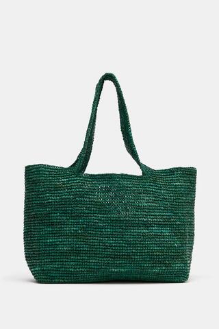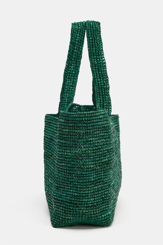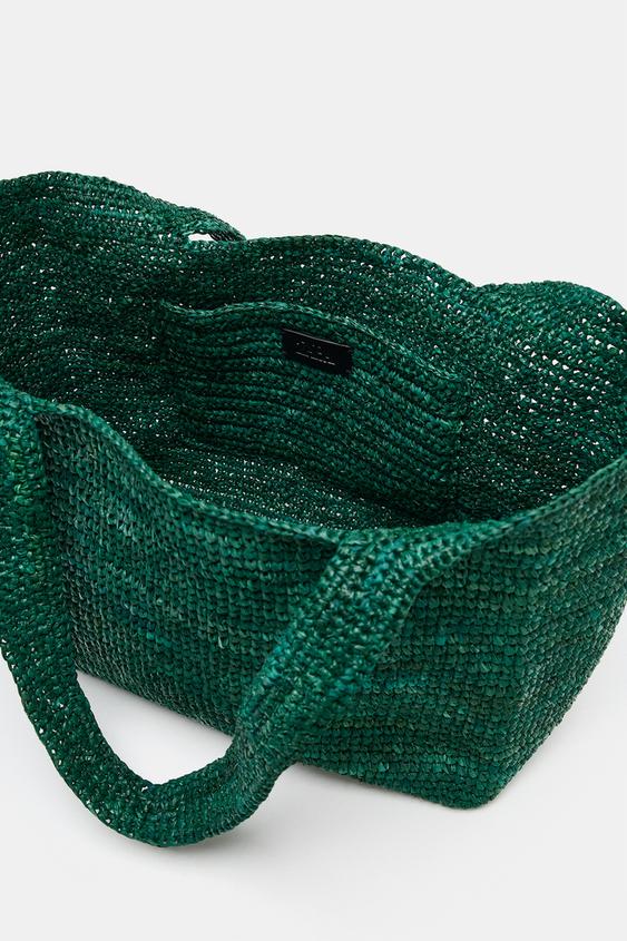ZARA ПЛЕТЕНАЯ СУМКА-ТОУТ, ЗЕЛЕНЫЙ