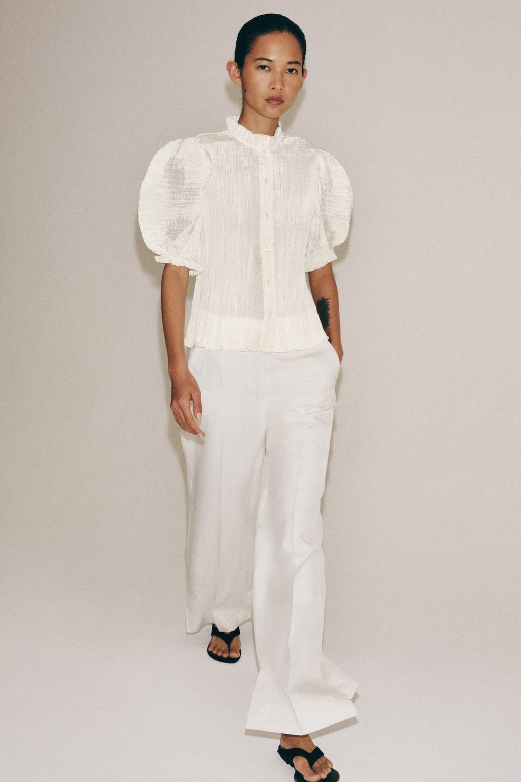 ZARA ПЛИССИРОВАННАЯ БЛУЗА ZW COLLECTION, ЭКРЮ