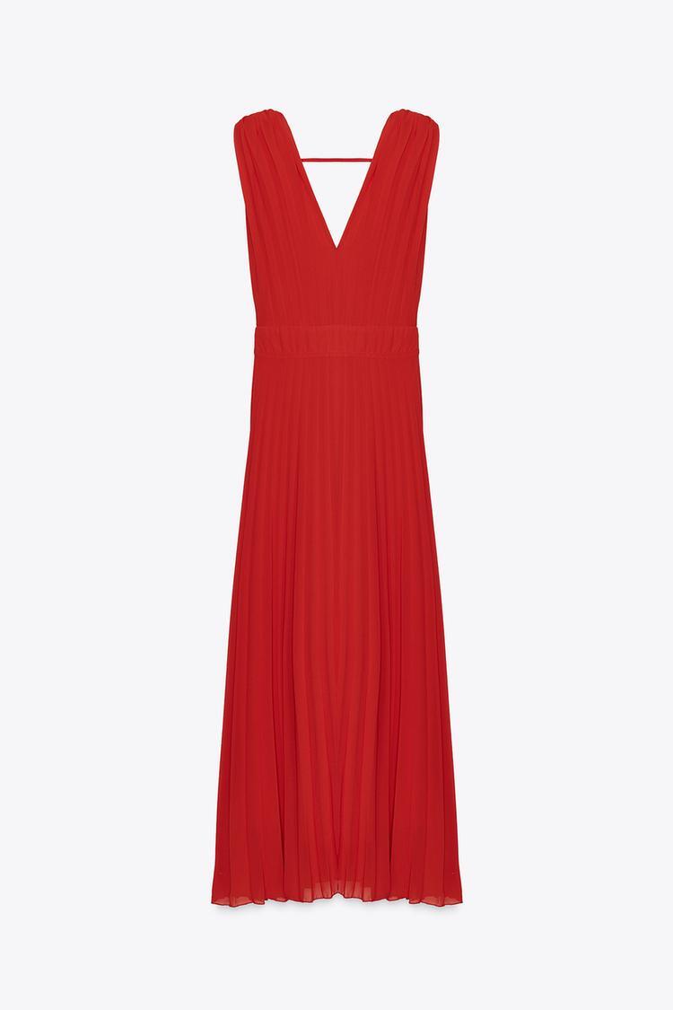 ZARA ПЛИССИРОВАННОЕ ПЛАТЬЕ МИДИ, КРАСНЫЙ