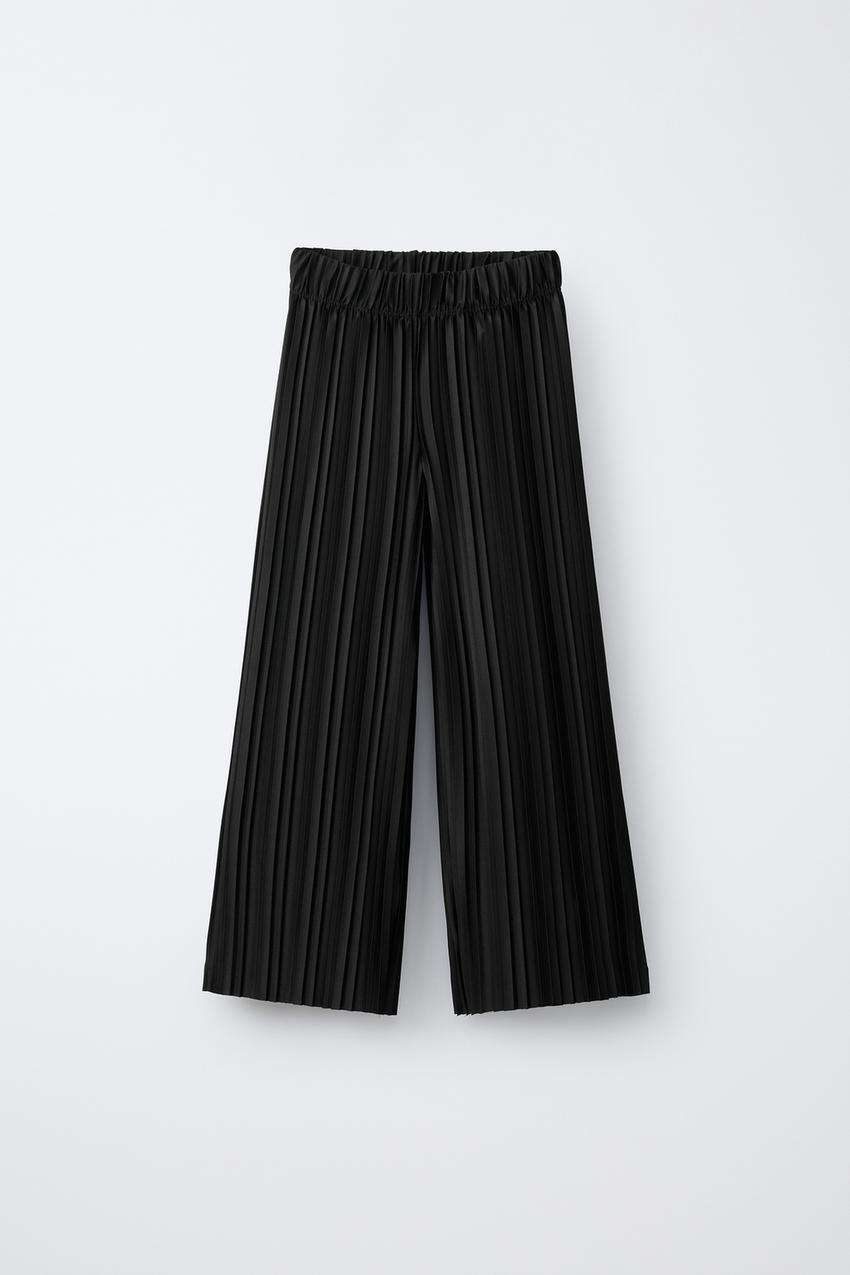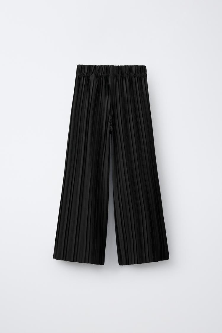 ZARA ПЛИССИРОВАННЫЕ БРЮКИ WIDE LEG, ЧЕРНЫЙ