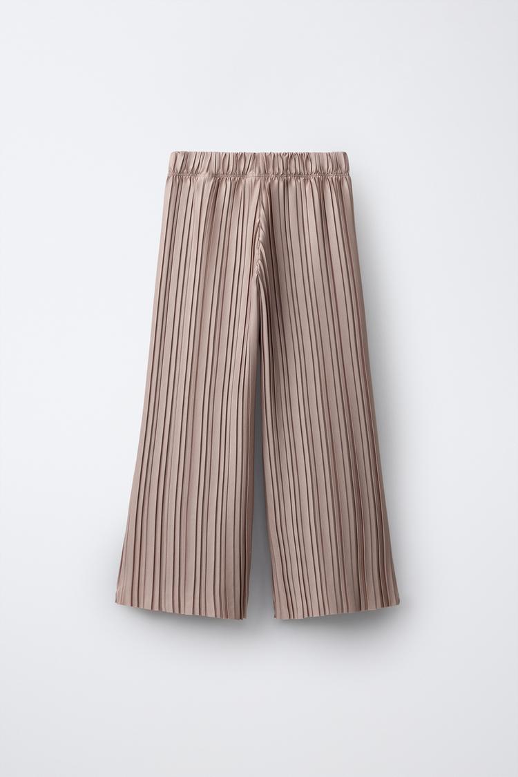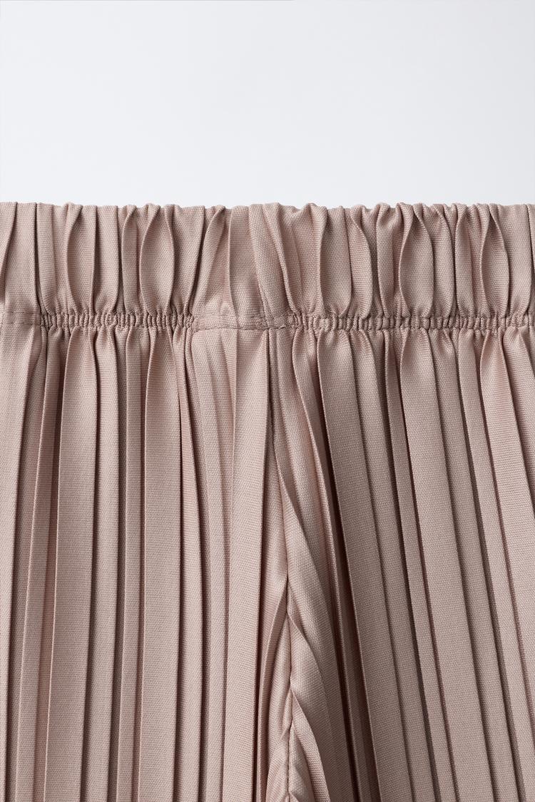 ZARA ПЛИССИРОВАННЫЕ БРЮКИ WIDE LEG, СЕРО-КОРИЧНЕВЫЙ