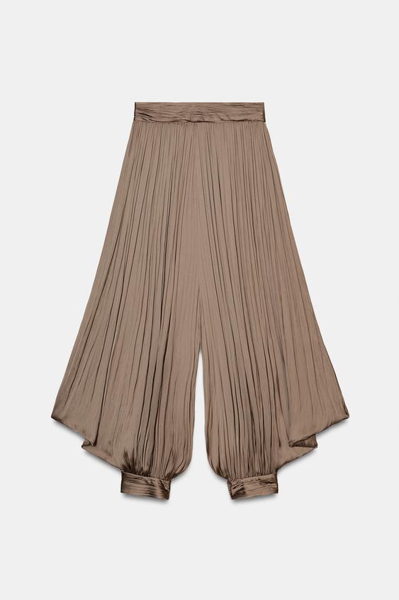 ZARA ПЛИССИРОВАННЫЕ ОБЪЕМНЫЕ БРЮКИ — ZW COLLECTION, КОРИЧНЕВЫЙ