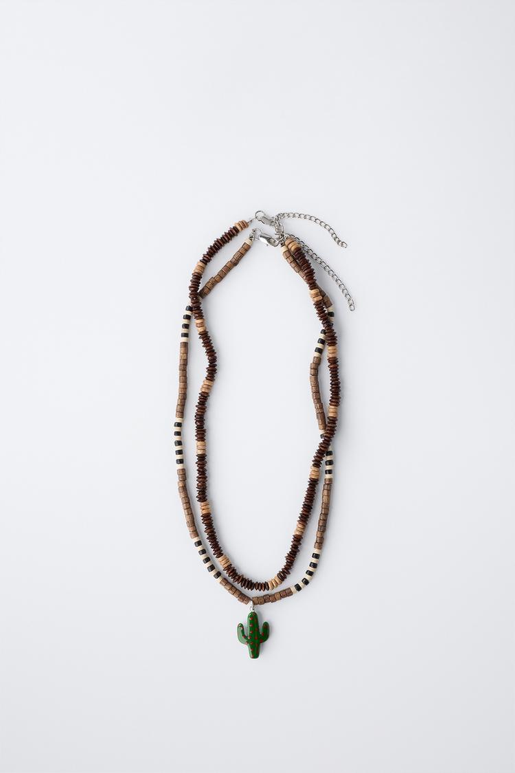 ZARA ПОДВЕСКА ИЗ ДЕРЕВЯННЫХ БУСИН, КОРИЧНЕВЫЙ