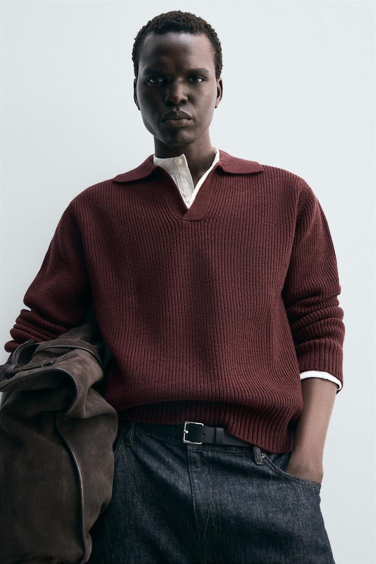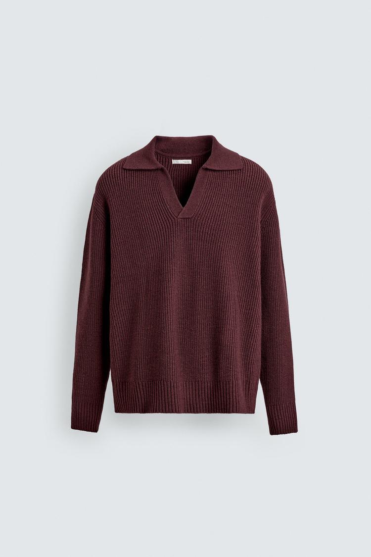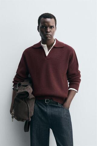 ZARA ПОЛО ИЗ ДВУХИЗНАНОЧНОГО ТРИКОТАЖА, БУРГУНДИ