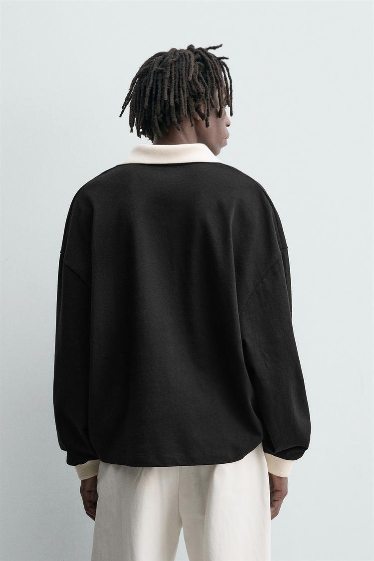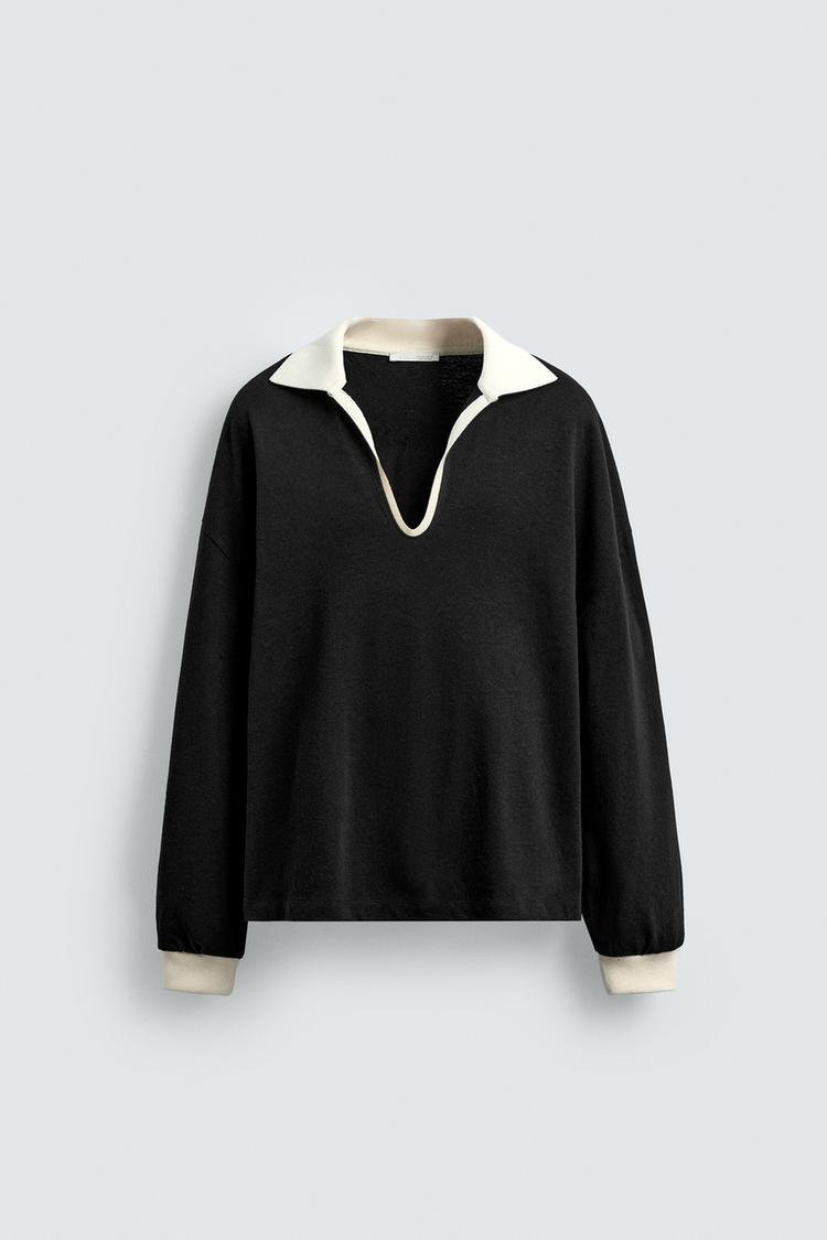ZARA ПОЛО ИЗ ХЛОПКА И КОНОПЛИ, ЧЕРНЫЙ