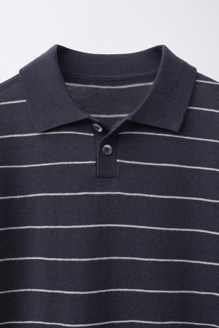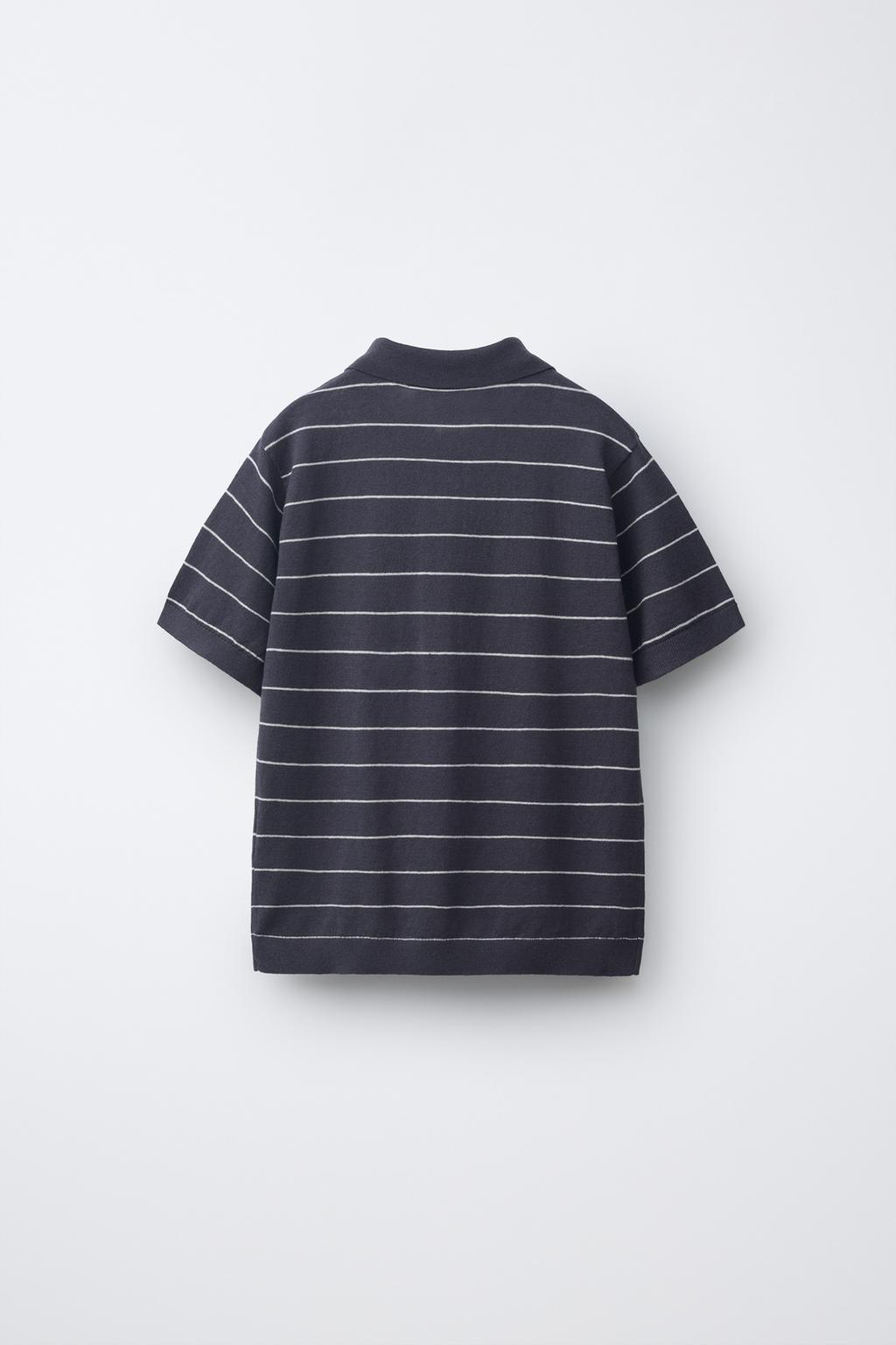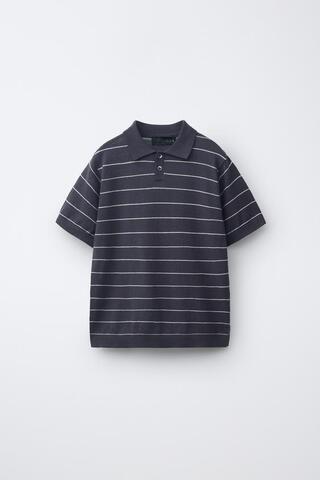 Поло с воротником и короткими рукавами. Изготовлено из 70% хлопка и 30% льна.