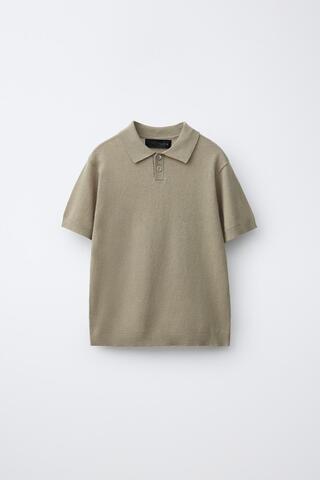 Поло с воротником и короткими рукавами. Изготовлено из 70% хлопка и 30% льна.