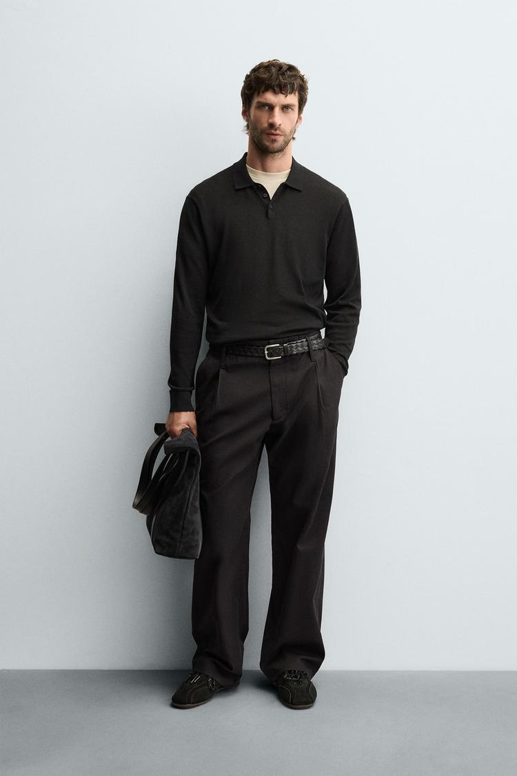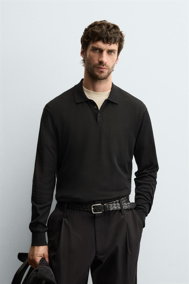 ZARA ПОЛО ИЗ ХЛОПКА И ШЕЛКА, ЧЕРНЫЙ