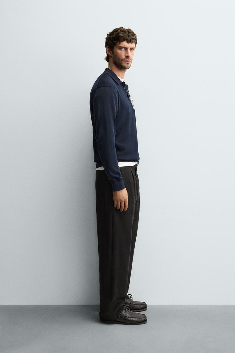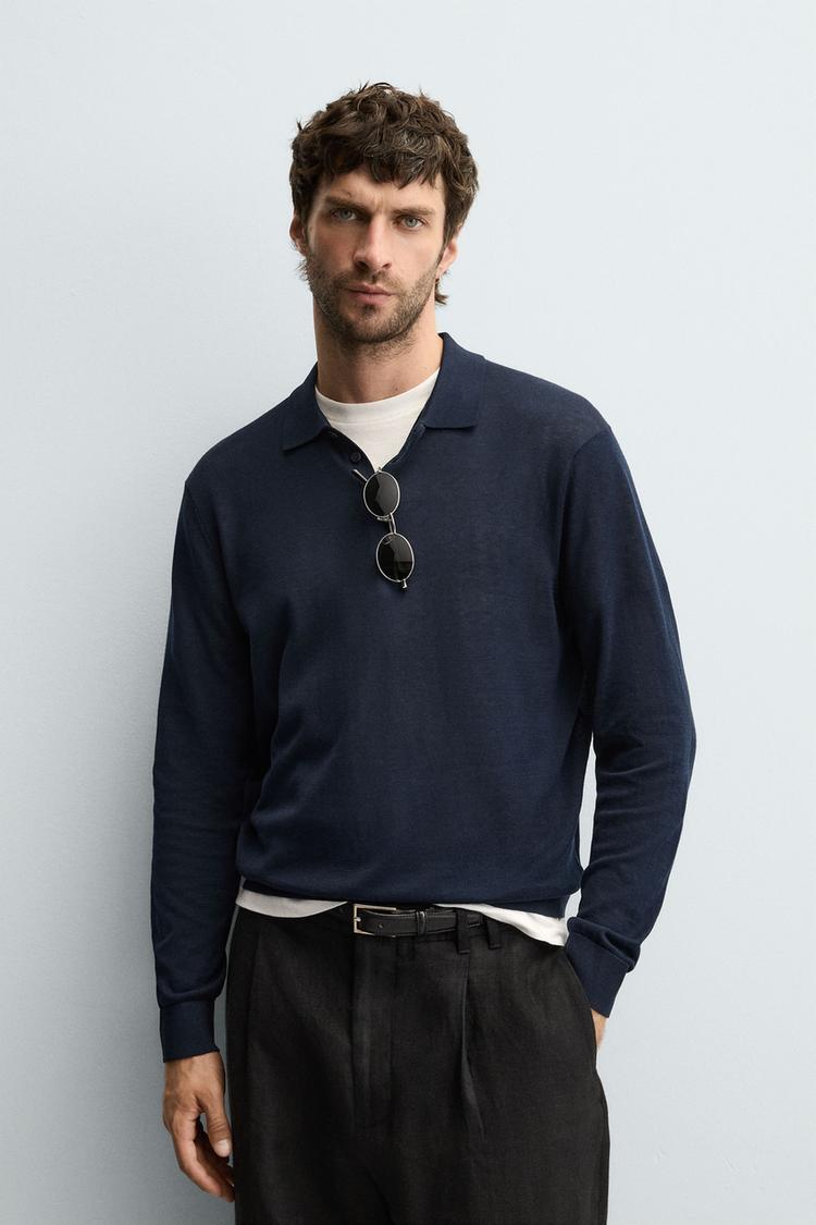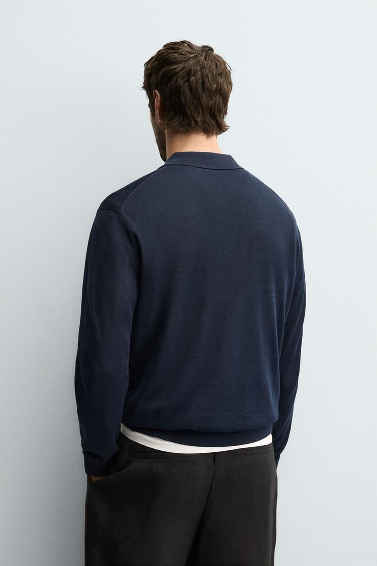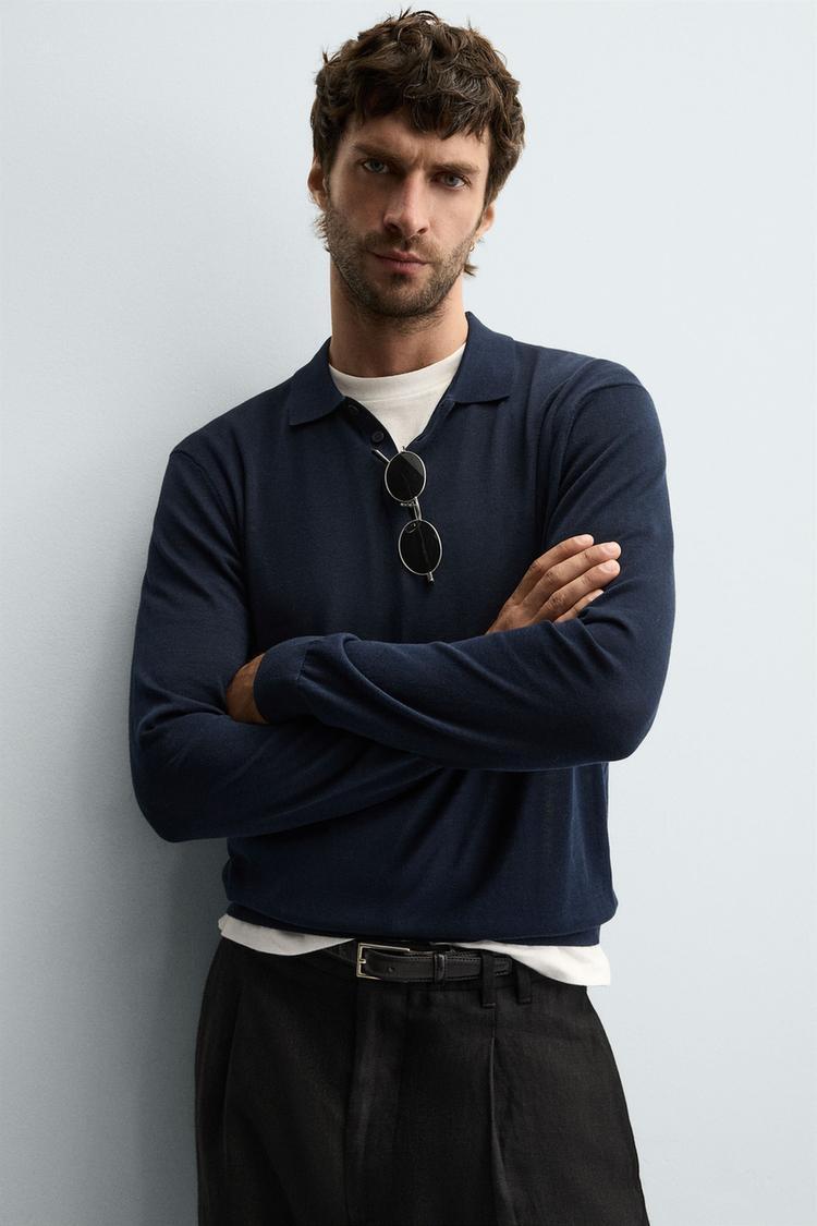 ZARA ПОЛО ИЗ ХЛОПКА И ШЕЛКА, МОРСКОЙ СИНИЙ