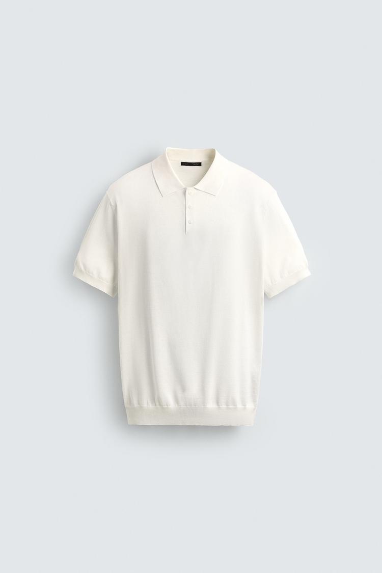 ZARA ПОЛО ИЗ ЛЕГКОГО ТРИКОТАЖА, ЭКРЮ