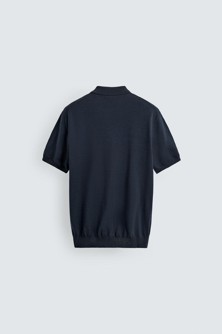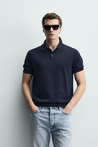 ZARA ПОЛО ИЗ ЛЕГКОГО ТРИКОТАЖА, МОРСКОЙ СИНИЙ